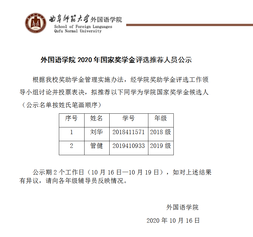 成人动漫 2020年国家奖学金评选推荐人员公示