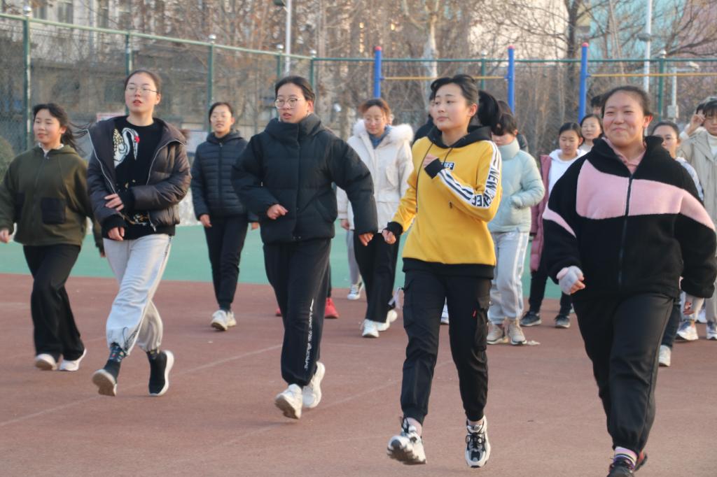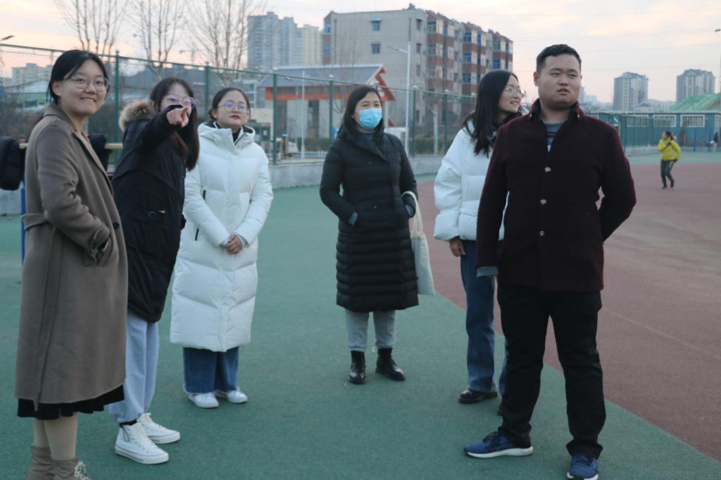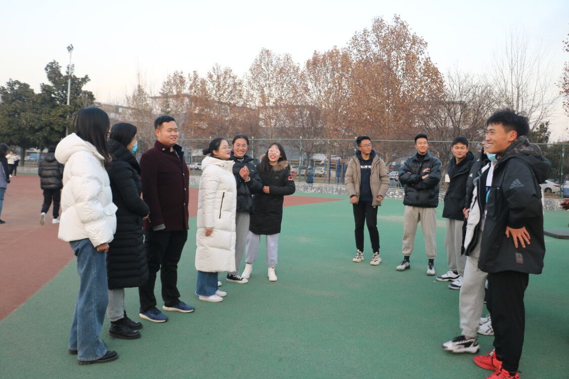 于十一月组织广大学子开展冬训活动。12月18日下午,2017级辅导员冀玉珍、2018级辅导员赵文彬、2019级辅导员张晓、2020级辅导员王伟及学生会主席团部分成员前往西操场看望冬训的学子们。