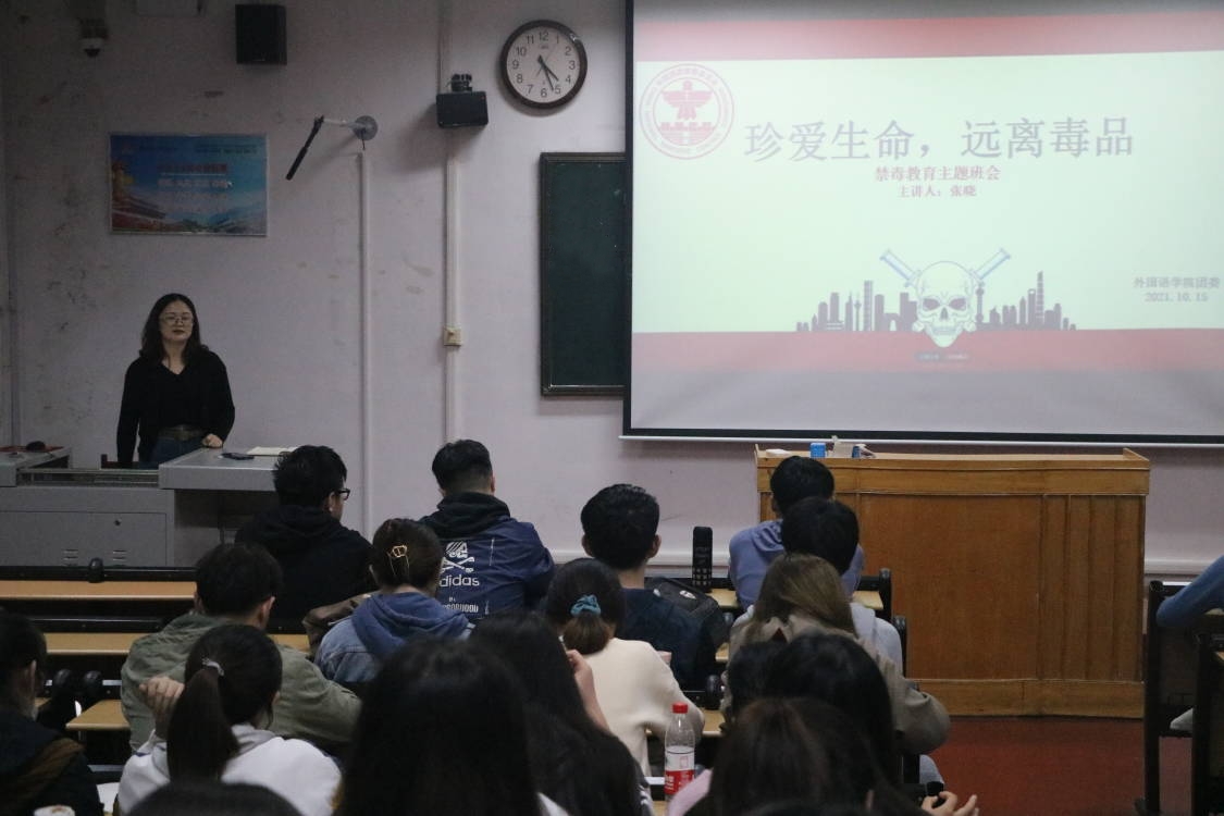 会上,辅导员赵文彬、张晓、王伟、冀玉珍、王仁杰分别就毒品的基本信息、危害、染毒原因等方面深入剖析。结合专家研究结果,他们透彻解析了青少年染毒的多方原因;并以现实案例导入,结合实际生活,警示全体同学:慎重交友,远离易染毒场所,注意毒品的伪装形式,警惕陌生人赠予的物品;最后,老师们再次向同学们发出号召:珍爱生命,远离毒品。