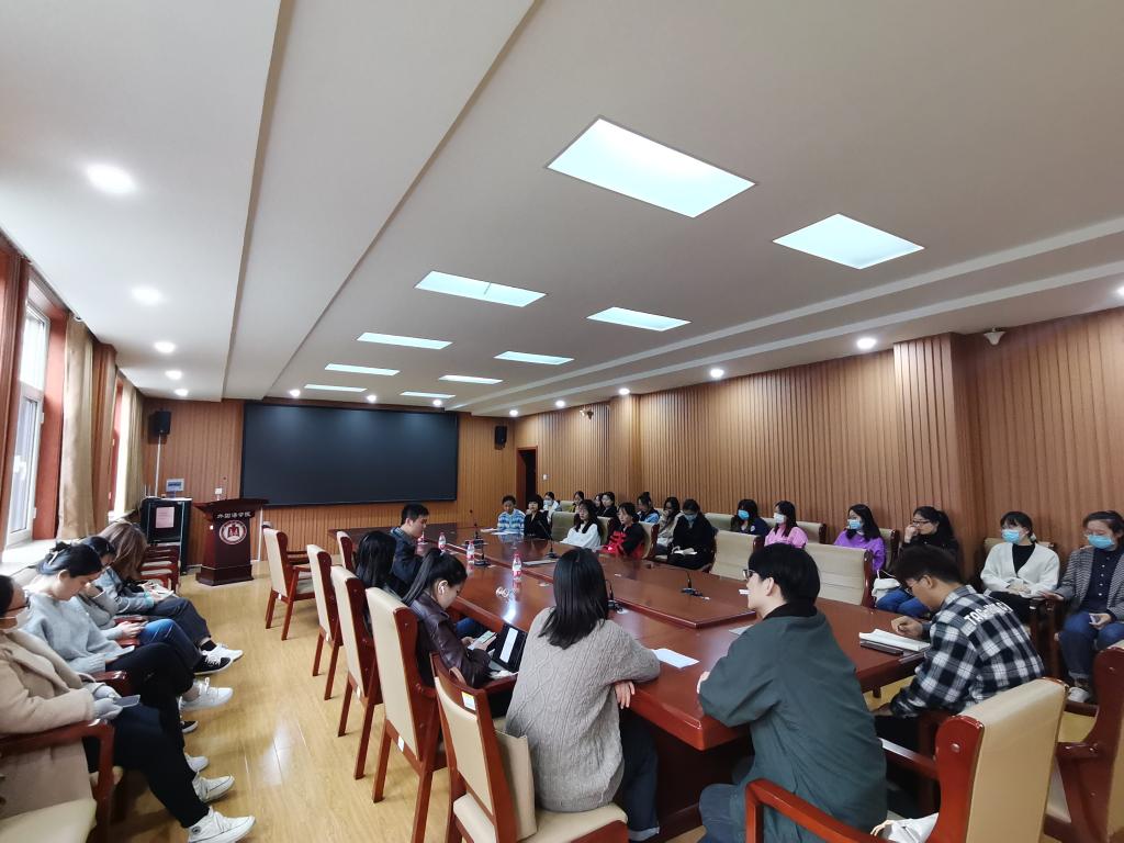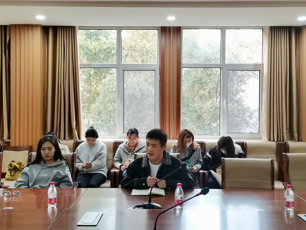 在外语系楼206会议室召开2019级、2020级研究生班会。本次会议由研究生辅导员王仁杰主持,线上、线下同步开展,成人动漫
