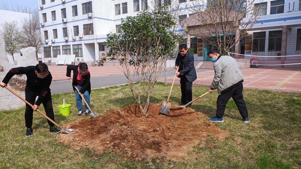 草长莺飞,草木初萌。为弘扬生态文明,共建绿色校园,3月29日,成人动漫 党委书记费沂涛、副书记王作茂与辅导员一起参加学校组织的义务植树活动,老师们分工协作,挥锹铲土、扶苗填坑、平土浇水,植树现场有条不紊,如火如荼。