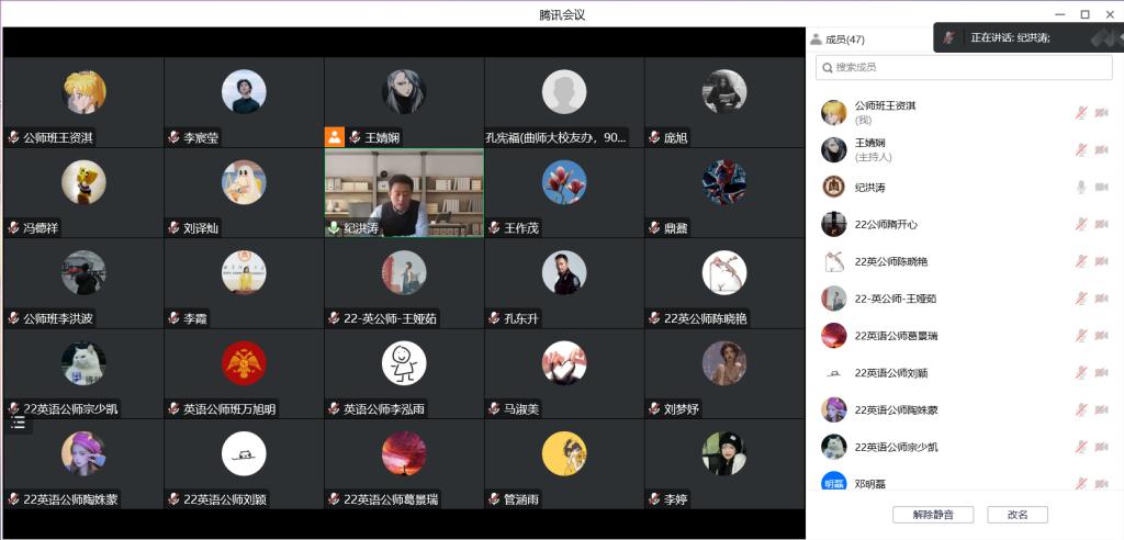 全体辅导员、2022级英语(公师)班全体本科生收听宣讲。一同参会的还有国内合作处、保卫处、基建处、附属中小学的部分领导老师。宣讲会通过线上方式进行。