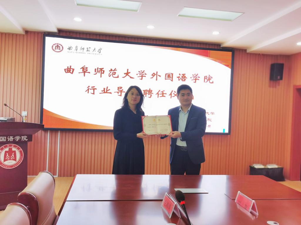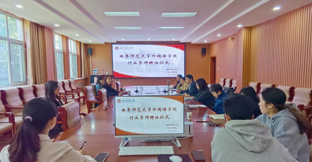 于系楼206举行行业导师聘任仪式暨师范生教学技能提升座谈会,聘请山东省特级教师、山东省教学能手、青岛市胶南一中夏竹慧老师为成人动漫