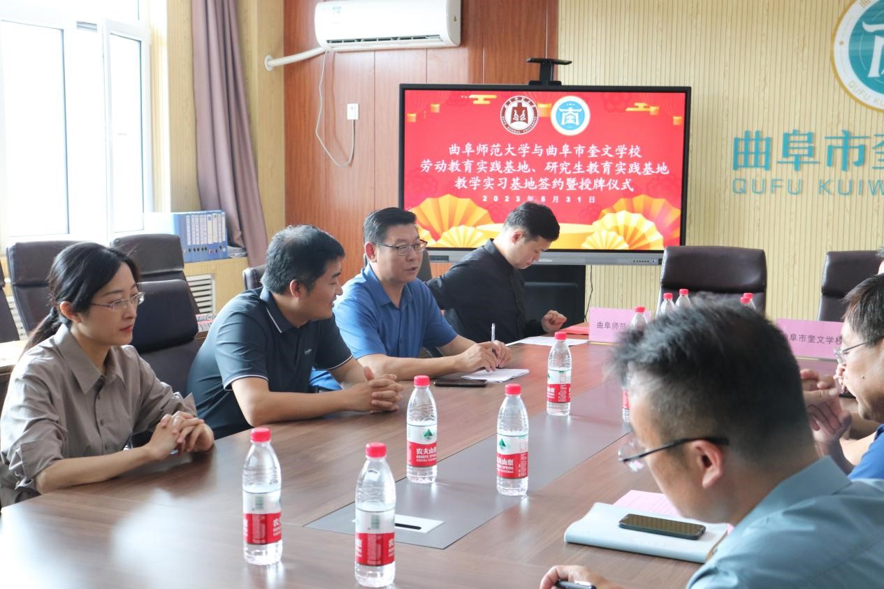 与曲阜市奎文学校以习近平总书记关于教育的重要论述为指导,全面贯彻党的教育方针,牢固树立教育发展新理念,按照拓展教育教学实践场所,满足多样化实践需求的要求和协同共建、资源共享的指导思想,充分发挥双方自身专业优势和服务社会功能,为社会培养优秀人才,也希望双方开展深入合作交流,共同进步。