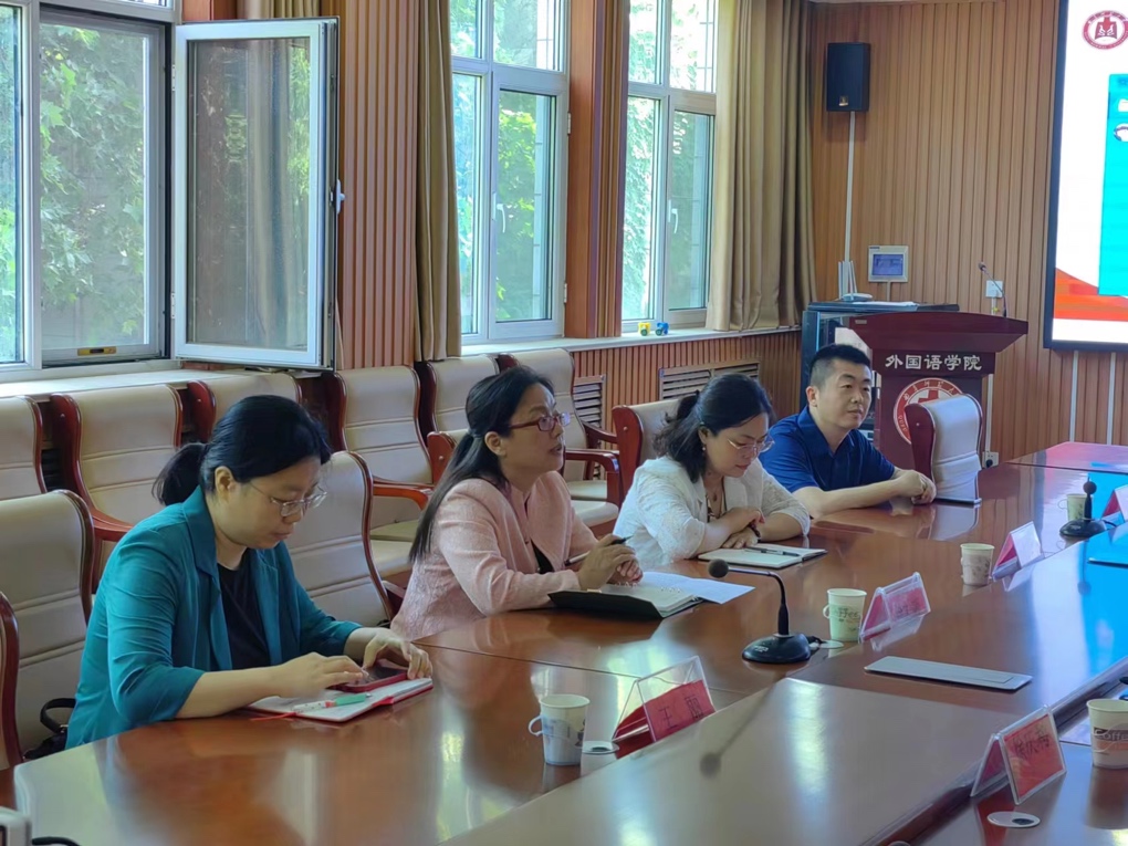 副院长邢加新,语言学教研室徐庆利、文学教研室王莉、翻译教研室王海霞三位老师参加座谈。