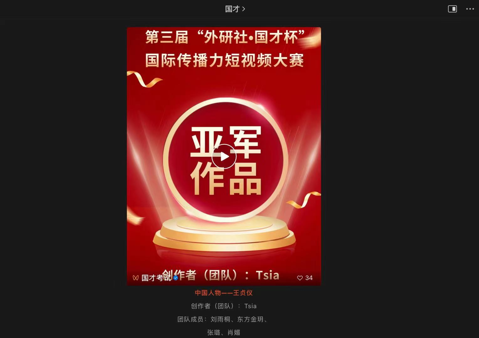 该团队在张立昌等老师的带领下,由刘雨桐担任队长,负责策划、文案撰写、视频剪辑等工作;成员东方金玥负责文案撰写、后期配音的工作,同时与两名外校成员合作完成该视频。该短视频紧扣本届主题“中国人物”,以水墨动画的形式,讲述了清朝女科学家王贞仪突破传统封建思想束缚,为中国科学界做出巨大贡献的故事。