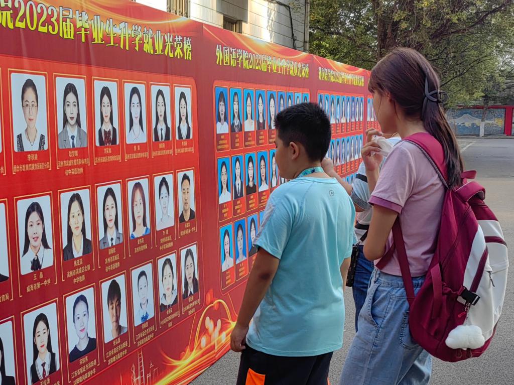 、“学榜样,树标兵”主题教育、毕业生升学就业光荣榜、学子风采展等展板吸引了家长和新生的目光。