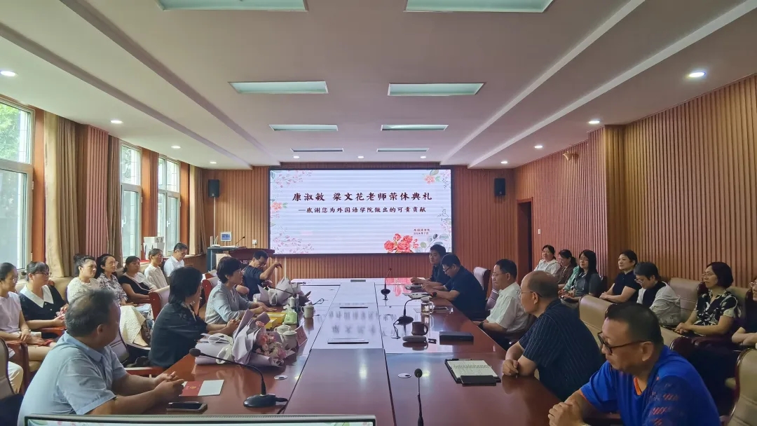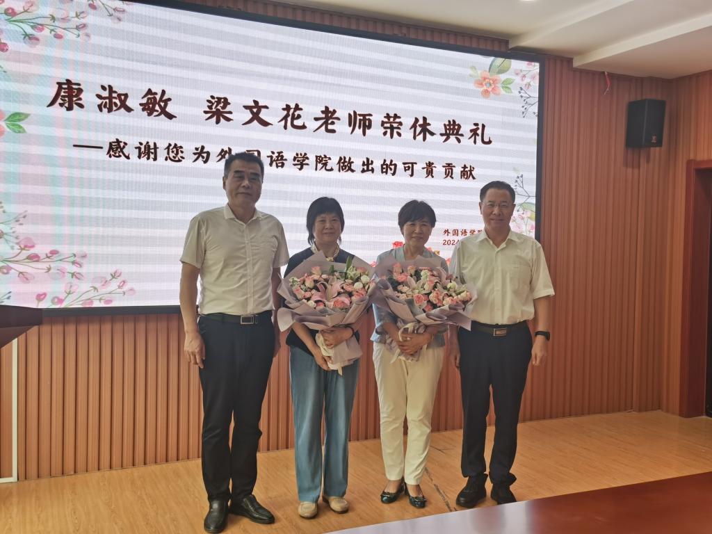 7月12日下午,成人动漫 在学院206会议室隆重举行了康淑敏教授和梁文花教授的荣休典礼。外院全体教职工齐聚一堂,共同见证了这一荣耀时刻。