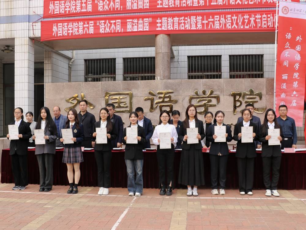 第六届“语众不同,丽溢曲园”主题教育活动暨第十六届外语文化艺术节启动仪式暨第五届表彰大会在学院楼前举行。成人动漫