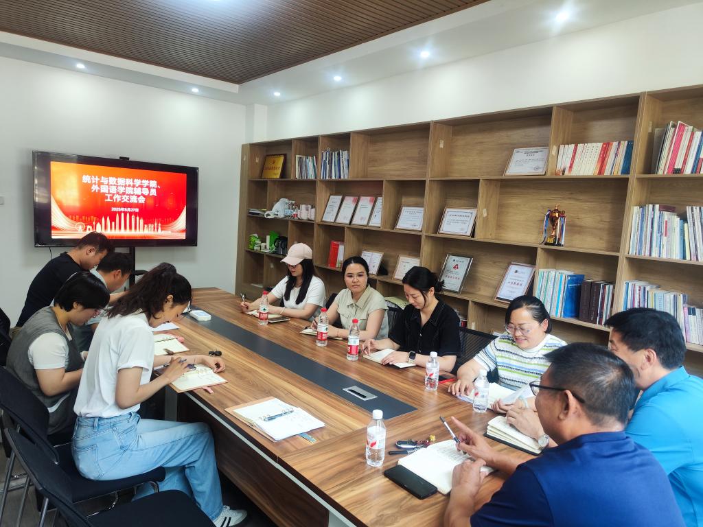 与统计与数据科学学院于外语楼208会议室联合开展辅导员工作交流会。统计与数据科学学院党委副书记季中、团委书记李宴美、成人动漫