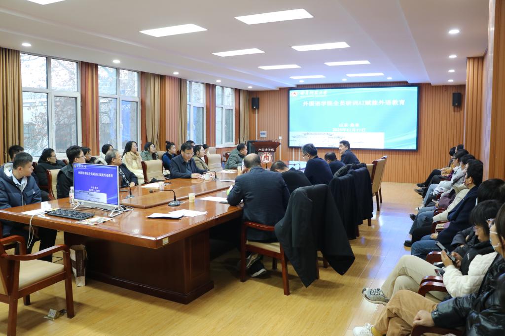 于学院206会议室召开全员研训AI赋能外语教育研讨会。成人动漫