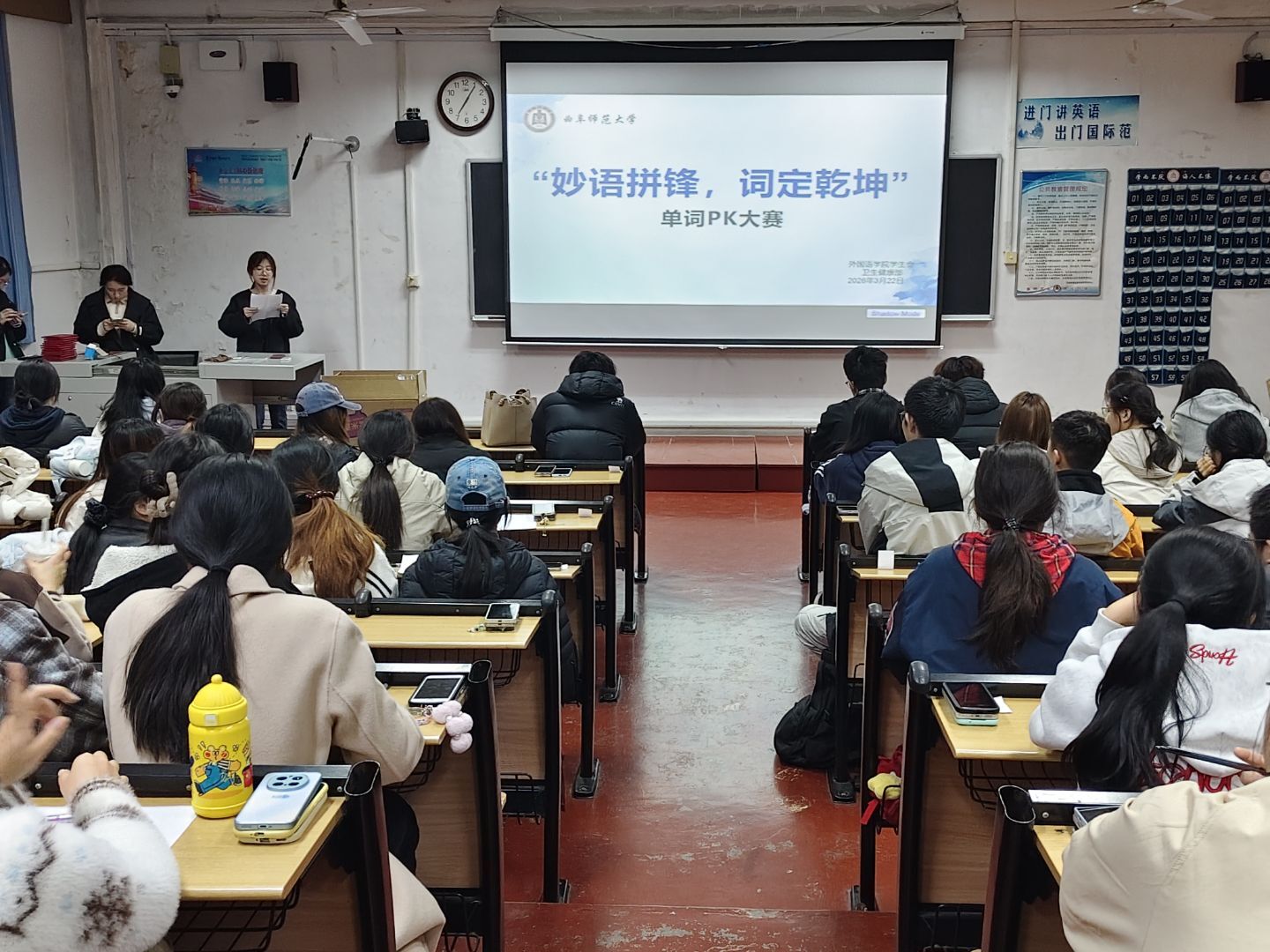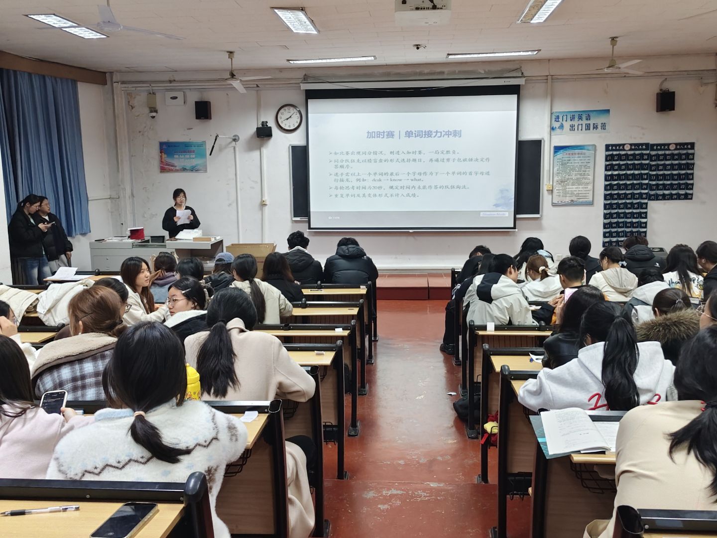 于系楼201教室举办“妙语拼锋,词定乾坤”单词PK大赛。