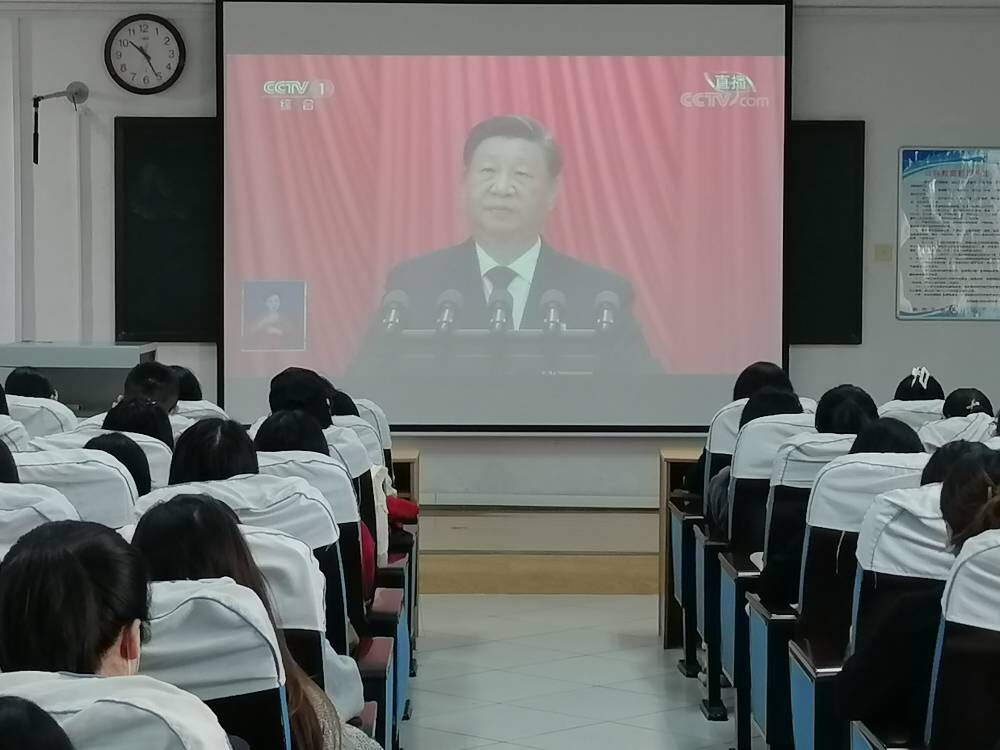 党委高度重视,提前安排部署,学院党委委员、党政领导班子、全体学生党员、入党积极分子代表在系楼101、206和301室集中收看,其他师生线上收看大会直播。