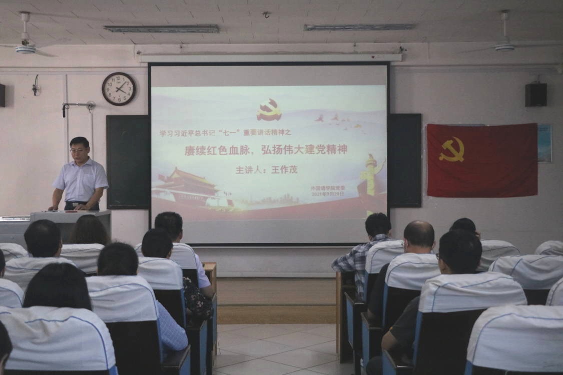 开展党员领导干部讲党课活动,会议由学生党支部书记张晓主持,学院党委副书记王作茂讲授主题为“赓续红色血脉,弘扬伟大建党精神”的党课,学院全体师生党员参加。