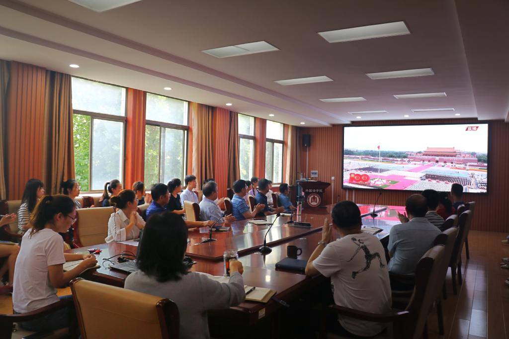 7月1日上午8时,成人动漫 党委理论学习中心组(扩大)在学院206召开会议,观看庆祝中国共产党成立100周年大会。本次活动采用集中与分散学习相结合的方式进行。集中学习由学院党委书记费沂涛同志主持,学院党委理论学习中心组全体成员、学生党员代表、入党积极分子代表参加。