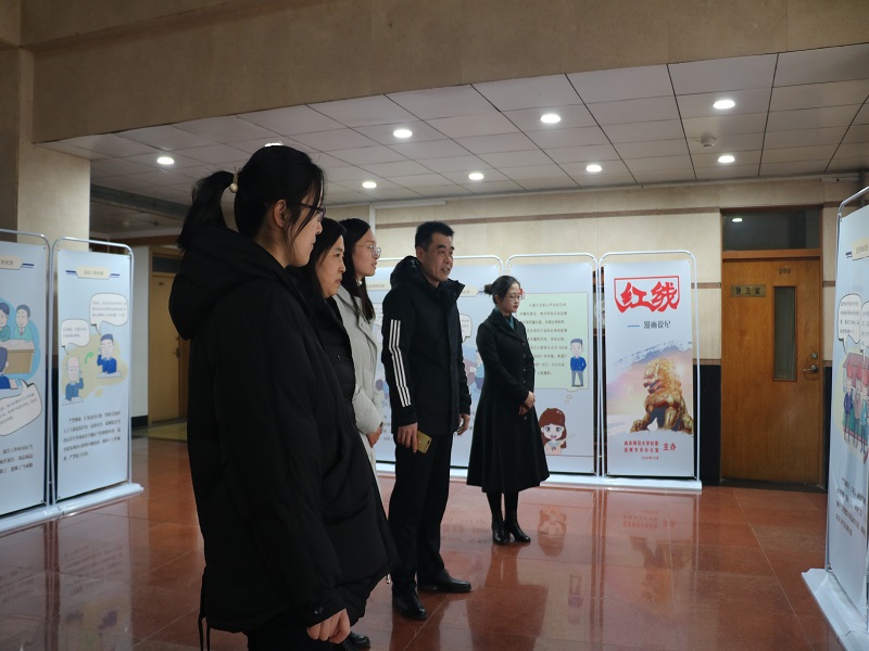 为强化全面从严治党及党风廉政建设,加强纪律教育,提高党员干部的纪律规矩意识,我校纪委、监察专员办公室举办《红线——漫画说纪》警示教育专题巡回展,1228日,成人动漫 党委书记费沂涛、学生党支部书记张晓、教师党支部委员代表刘珊珊及学院全体辅导员在科技楼二楼大厅参观巡回展览。