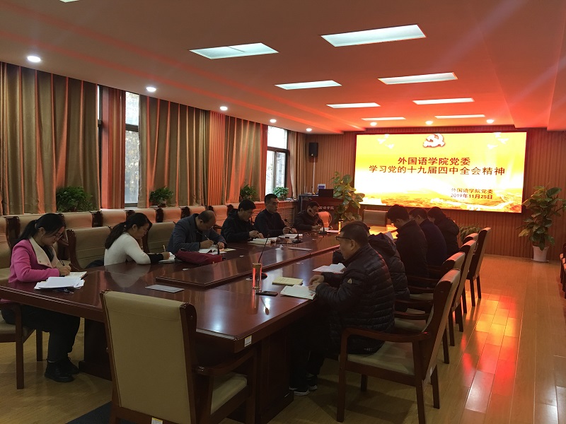 11月25日,学院党委理论中心组在学院206会议室开展学习党的十九届四中全会精神专题会议。会议由学院党委书记费沂涛主持,学院党委理论中心组全体成员参加。