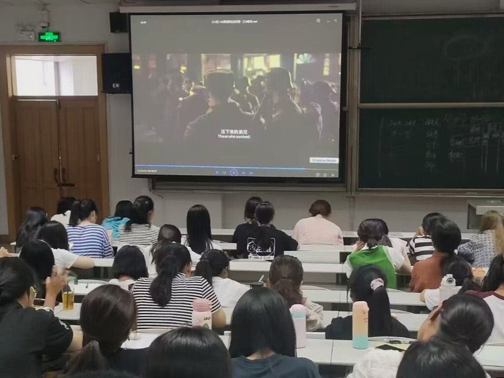 活动中新生们观看了战争题材影片《八佰》,该片取材于1937年淞沪会战,讲述了被称作"八百壮士"的中国国民革命军第三战区88师524团的一个加强营,固守苏州河畔的四行仓库、阻击日军的故事。同学们被影片所呈现的强烈爱国主义情怀深深感染,热泪盈眶。观影结束后,同学们纷纷表示,将以先烈为榜样,不怕吃苦,奋发向上,从红色基因中汲取前进的力量,成长为能担当民族复兴大任的时代新人。随后,赵文彬老师就国防教育有关内容及征兵工作有关政策进行宣讲,向同学们讲授了国防教育知识,号召同学们从自身做起并带动身边人,关心、支持、参与国防建设,营造关心国防、热爱国防、建设国防的良好氛围。
