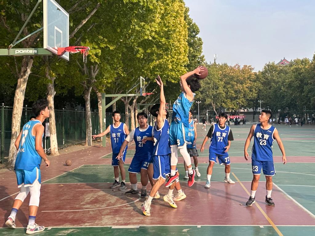 男篮队于学校北篮球场分别对战音乐学院、教育学院、历史文化学院和生命科学学院。