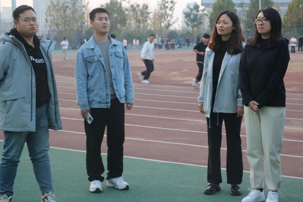 辅导员王婧娴、赵文彬、王伟、王仁杰前往学校西操场,慰问冬训同学。