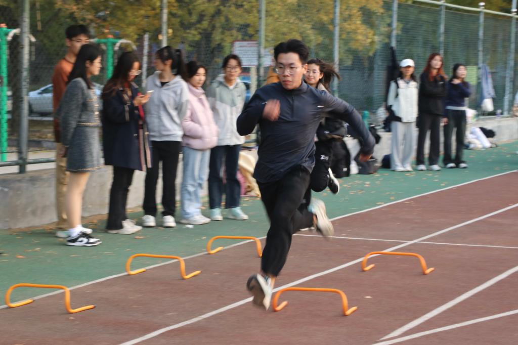 体育部成员带领冬训队员进行长跑热身,参训同学们队列整齐、朝气蓬勃。热身完毕后,同学们迅速集合,进行了适当放松与休息,随后,在冬训教练员的指导下进行高抬腿、立定跳远等身体素质训练和特定训练项目的练习。在此过程中,老师们来到参训同学身边进行亲切慰问,询问同学们的训练情况,叮嘱同学们在训练时注意安全。在老师们的关怀下,同学们备受鼓舞,虽然天气寒冷,但是外院学子依旧精神饱满、积极参训,在耐力与毅力的挑战中不断突破自我,成为训练场上一道亮丽的风景线。
