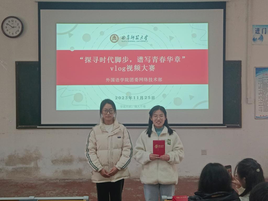 本次比赛分为参赛选手讲解创作理念和播放vlog视频两部分,最终以平均分决定各组排名。选手们洋洋盈耳的配音、帧帧细腻的图片以及别具匠心的剪辑,展现了他们对时代发展的认识。其中,李希茹团队采用倒叙、回忆与现实交织等独特的叙事技巧表达对时代的思考和展望;张立鑫团队对一天的小事进行思考,见证个人的成长,鼓励青年们奉献社会。最终,李希茹团队荣获一等奖,王超团队和张立鑫团队荣获二等奖,张泽苇等四组同学荣获三等奖。