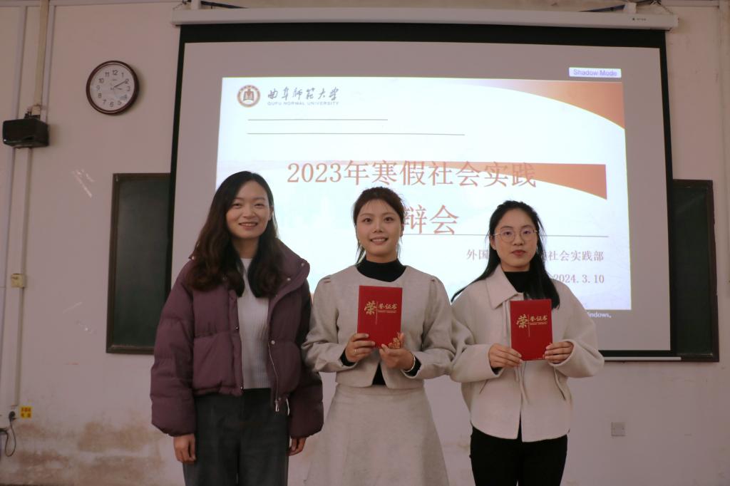于系楼101举办2024年寒假社会实践答辩会。本次答辩会由辅导员赵文彬、王伟以及社会实践部副部长宓子涵担任评委。