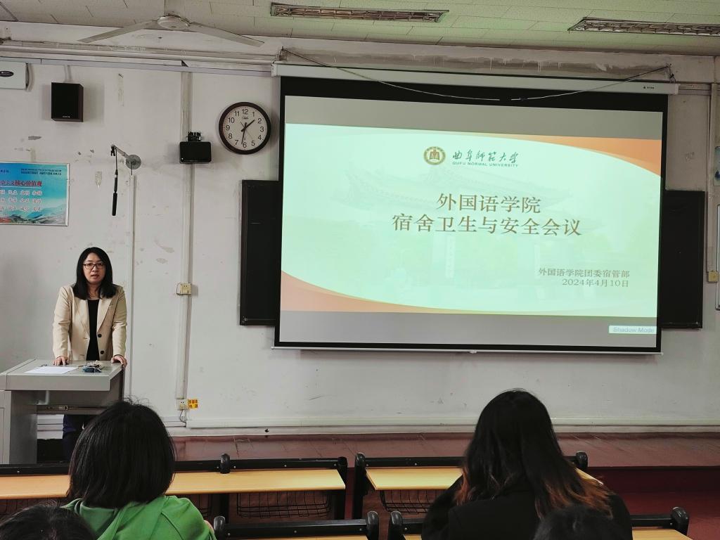 会议伊始,团委宿管部部长宋晓燕为大家认真讲解了宿舍违规电器和安全隐患排查工作的相关内容。随后,她向班委们详细介绍了宿舍卫生检查、晚归查寝等事项,包括线上查寝流程、班委查寝表格的领取与上交等,以提高学生干部对宿舍卫生与安全的重视,使各项工作有力有序开展。会议的最后,团委宿管部部长宋晓燕向班委们强调学生公寓管理规定的奖惩细则,进一步明确了宿舍管理相关规定。