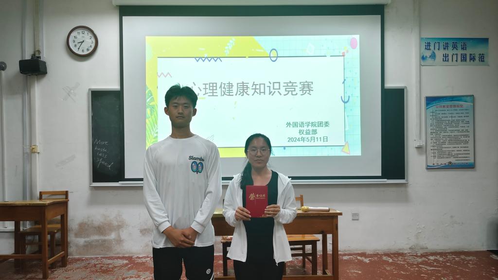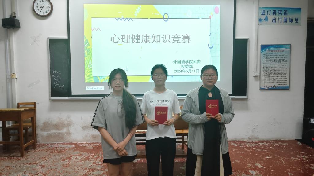 为宣传心理健康知识,引导健康人生,提高学生心理素质,并营造浓厚的校园心理文化氛围,成人动漫 于5月11日晚在系楼101室举办“呵护心理健康,共创美好未来”心理健康趣味竞赛活动。成人动漫 学生会团委副书记菅桂义,副主席杨子涵,秘书长王梓扬及权益部部长所海蓉担任本次竞赛的评委。
