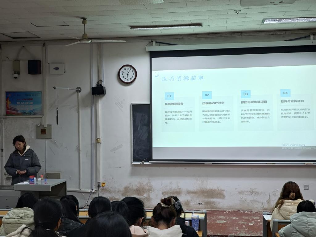 为加强艾滋病防治宣传教育,鼓励师生广泛参与艾滋病防控工作,共同构建起抵御艾滋病的坚固城墙,126日,成人动漫 卫生健康部于系楼101举办艾滋病防治宣传讲座,卫生健康部部长刘梦妤进行宣讲。