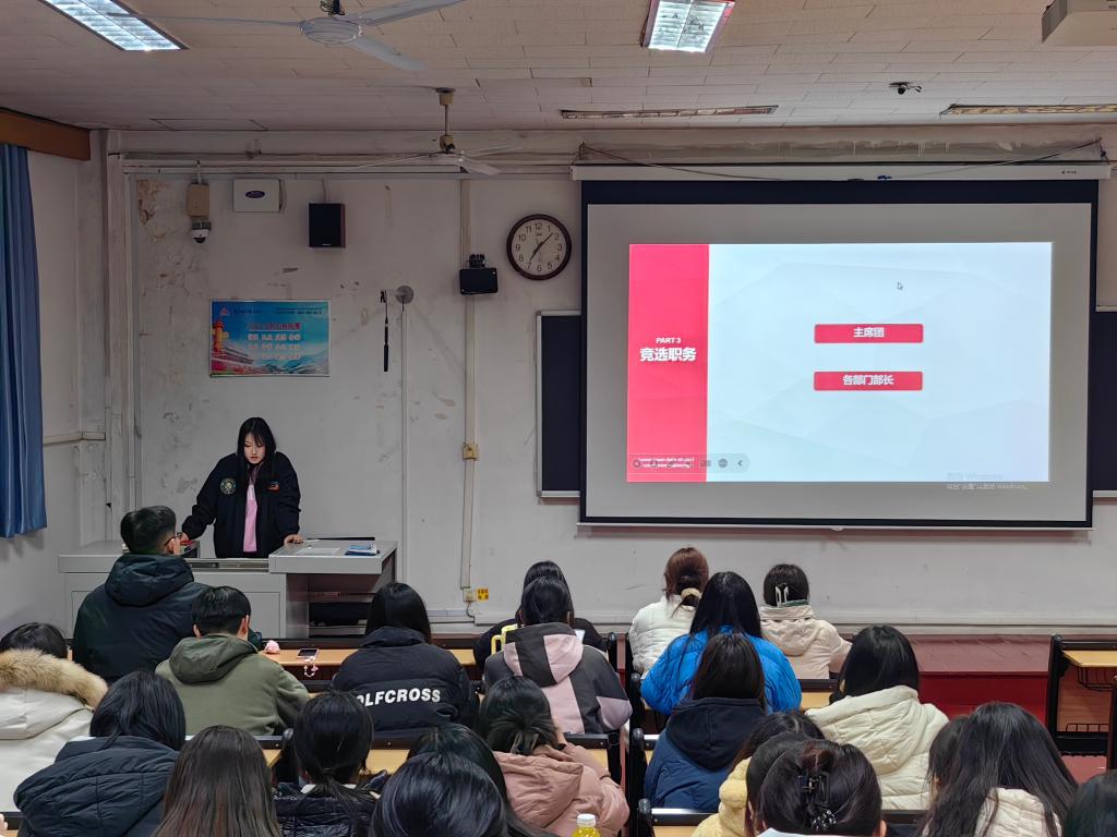 学生会于系楼201举办副部换届动员大会。本次会议由学生会主席团团委副书记菅桂义和秘书长王梓扬共同主持。