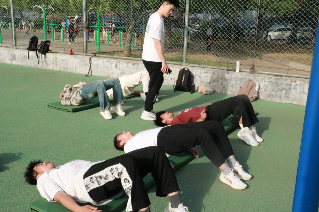 党委副书记王作茂,本科生辅导员王仁杰,徐明涛,赵文彬,王伟来到西操场训练场地,对刻苦训练的运动员们进行关心和鼓励。