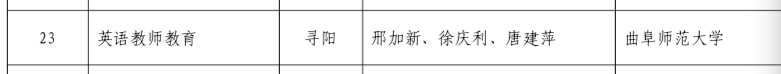 寻阳教授负责(团队成员:邢加新、徐庆利、唐建萍)的《英语教师教育》课程入选2021年山东省研究生教育课程思政示范课程。根据《山东省教育厅关于开展课程思政示范项目建设工作的通知》(鲁教高函〔2021〕8号),入选示范课程的相应授课教师、团队自动认定为山东省课程思政教学名师和教学团队。