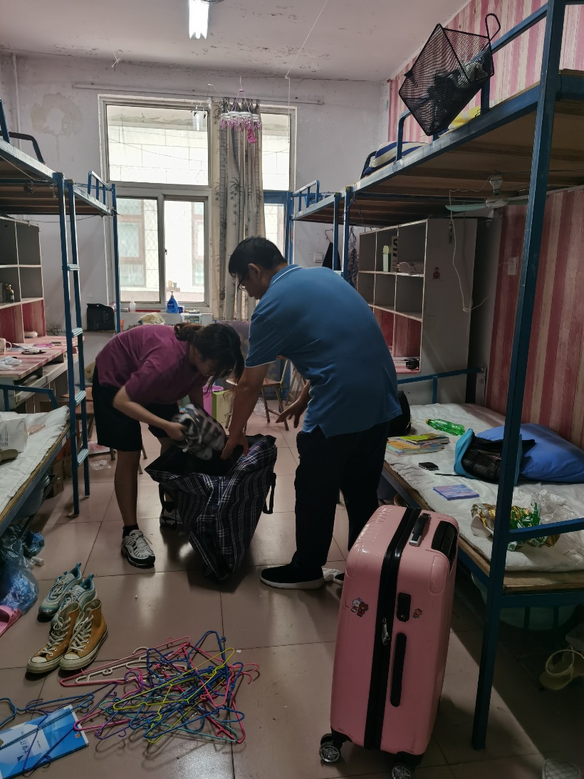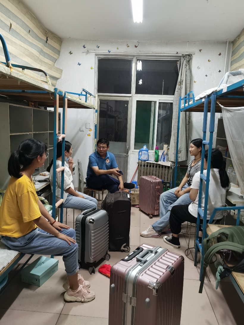 党委副书记王作茂、2019级辅导员张晓,一起走访毕业生宿舍看望毕业班同学,并和毕业生亲切交谈,对毕业生离校前安全工作的落实情况进行了巡查。