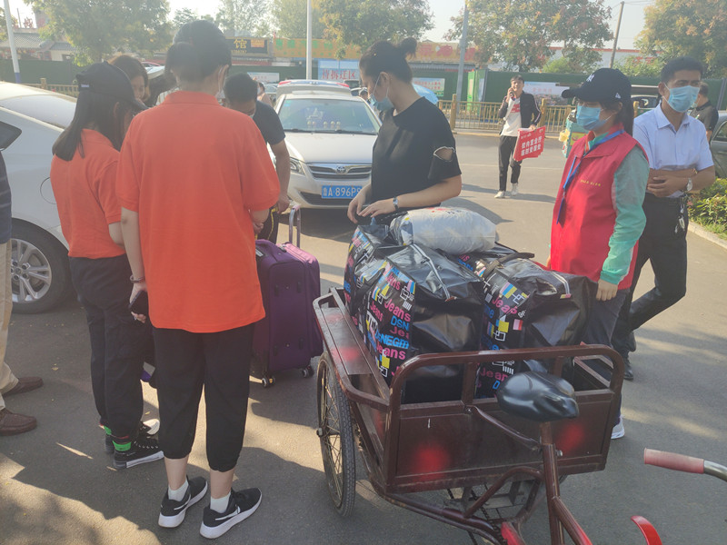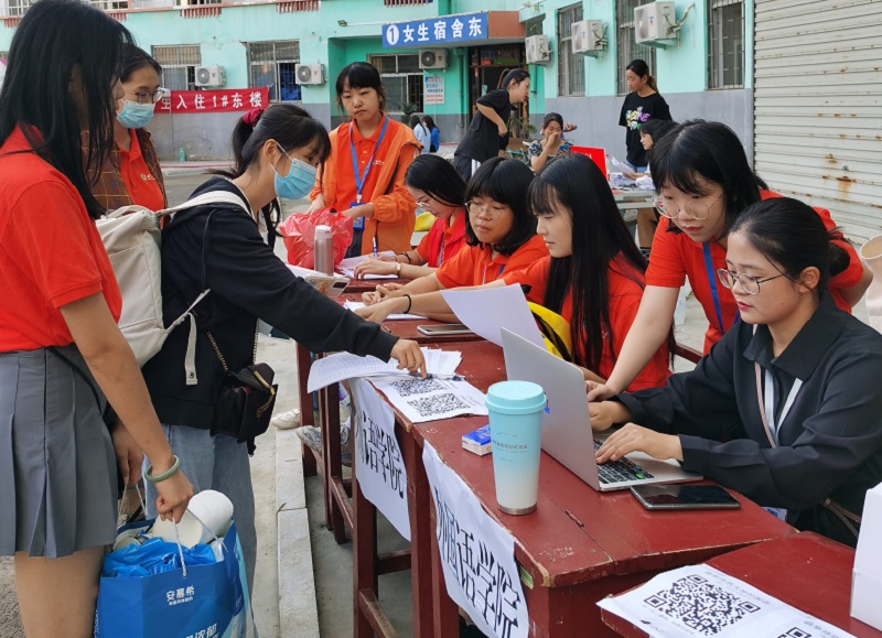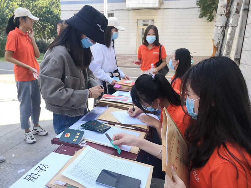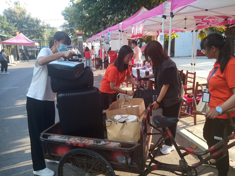 团委学生会统计好新生信息,将2019级学生的信息和2020级新生的信息进行对应,根据专业、地市、报到时间等因素,制作“二对二”迎新表格,以便2019级学生提前与2020级新生取得联系,了解新生具体来校报到时间,提前在各入校口等待新生的到来。新生到校后,2019级学生统一着装,化身“甜橙”,帮助新生搬运行李、引导学院迎新地点、上交新生材料等。在完成新生报到后,2019级学生还带领新生们逛校园,向他们一一介绍学校的各个建筑物,来帮助新生熟悉校园,耐心解答新生们在学习和生活上的问题,帮助他们尽快融入新的校园生活。