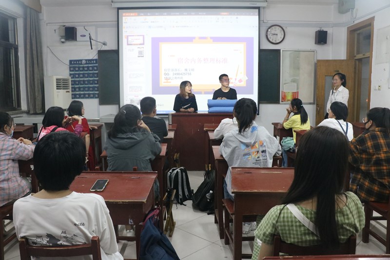 首先,教官们指出军训是一种特殊的教育方式,是同学们步入大学必修的一课,具有其他教育不可替代的作用,同时军训生活也必将是一段宝贵的经历。教官们要求2020级新生强化组织纪律观念,锤炼英勇顽强、吃苦耐劳的品质,增加国防安全意识,不辜负学校领导和教官的期望,克服大学生活中的第一道难关,走向崭新的大学生活。随后,王伟老师希望新生在军训生活中强身健体,提高身体素质,以饱满的热情投入到军训中,积极展现自我。王老师就学习和自我管理方面向新生寄语,指出大学不仅是接受专业知识的地方,更关乎全面的培养,并鼓励同学们积极主动地去尝试,尽快地适应大学生活和融入到外院大家庭,牢记“学而不厌,诲人不倦”的校训,达到全面发展自身的目标。另外宿管部于201教室向2020级新生们讲解有关内务整理的相关事项,如叠被子、摆放个人物品等。最后,20级辅导员助理带领新生们回到各自的教室,耐心地解答2020级新生们对军训生活以及大学生活的问题。
