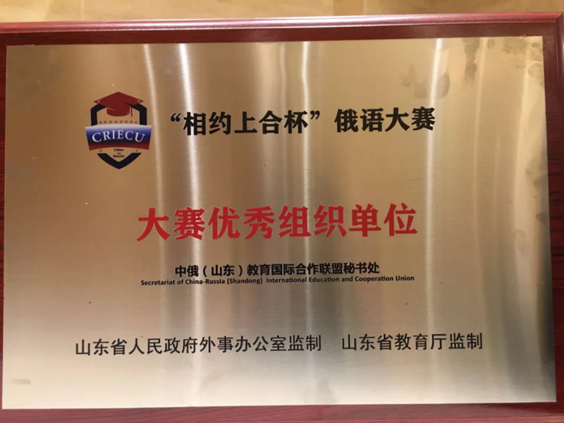 通过院内选拔,李晓伟、王晓楠、白苑博三位选手赴济南参加了此次比赛。选手们以规范的语音语调、流畅的口语表达赢得了评委的一致好评。最终获得了1个一等奖、1个二等奖、1个三等奖的好成绩。比赛结束后,山东省教育厅与山东省人民政府外事办公室相关部门代表向获奖选手颁发证书,并向我校颁发“大赛优秀组织单位”奖。与此同时,王晓楠同学将参加拟于11月份在青岛举办的“相约上合杯”俄语大赛决赛。