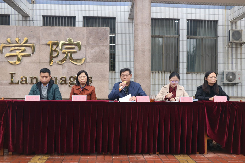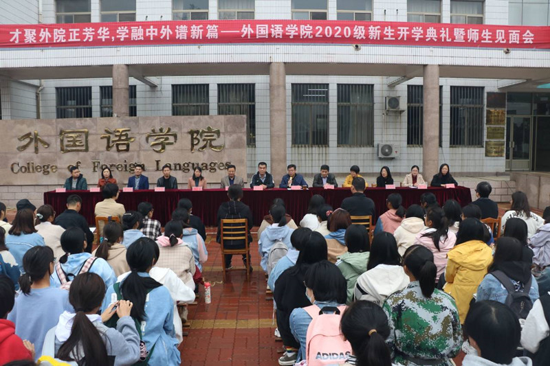 院长秦洪武,学院党委书记费沂涛,党委副书记王作茂,院长助理高歌、邢加新,教授王福祥,法语系主任唐友霞,俄语系主任田守欣,办公室主任张金霞,团委老师张晓,2017级辅导员冀玉珍,2018级辅导员赵文彬,2020级辅导员王伟出席本次会议。开学典礼由学院党委副书记王作茂主持,2020级新生参加了此次典礼。