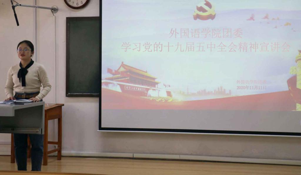 于11月11日在外语楼301教室成功开展党的十九届五中全会宣讲会,会议由成人动漫