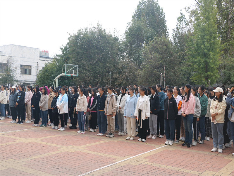于系楼前召开冬训动员大会。全体学生参加动员大会,辅导员赵文彬、张晓、王伟,学生会主席徐海依、副主席史佳伟、冬训教练员及队长出席本次大会。