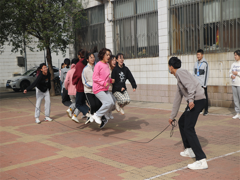 于系楼前举办了2021年班级跳绳比赛,辅导员赵文彬、张晓、王伟到场助威,成人动漫