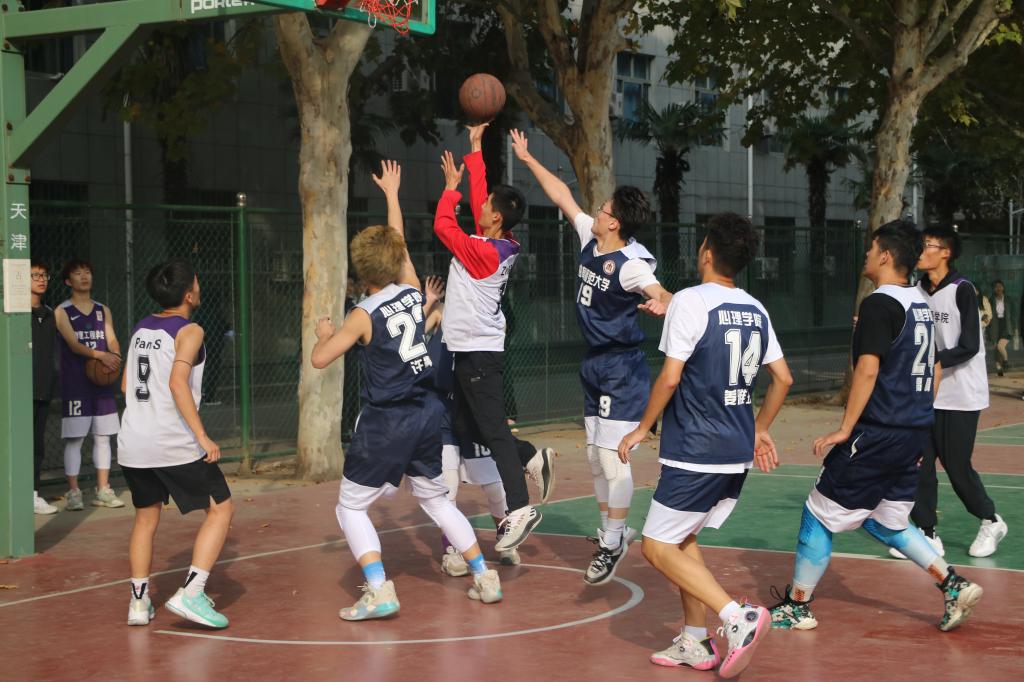 怀着坚定的信念,队员们沉着冷静,稳扎稳打,抢下一个又一个篮板,熟练的传球与严密的防守赢得了观众们热烈的掌声。比赛过程中,女篮队员刘正涛带球突破对方防线,精准投篮,鼓舞了外院女篮的士气,将比赛推向了高潮。男篮比赛同样热火朝天,队员们你追我赶,争分夺秒,以钢铁般坚固的防守成功抵御对方进攻。27日下午两点,小组赛最后一场比赛正式开始。其中男篮队员潘帅的三分球让队友欢呼,令观众沸腾。轮到我方进攻,队员们犹如长矛一般,势如破竹,精准地将球投入篮筐。面对如此精彩的比赛,观众们的情绪非常高涨,一声声的呐喊,一次次的掌声,展现了外院学子积极昂扬的风采。最终,外院男篮在观众们的欢呼声中赢下了本场比赛。