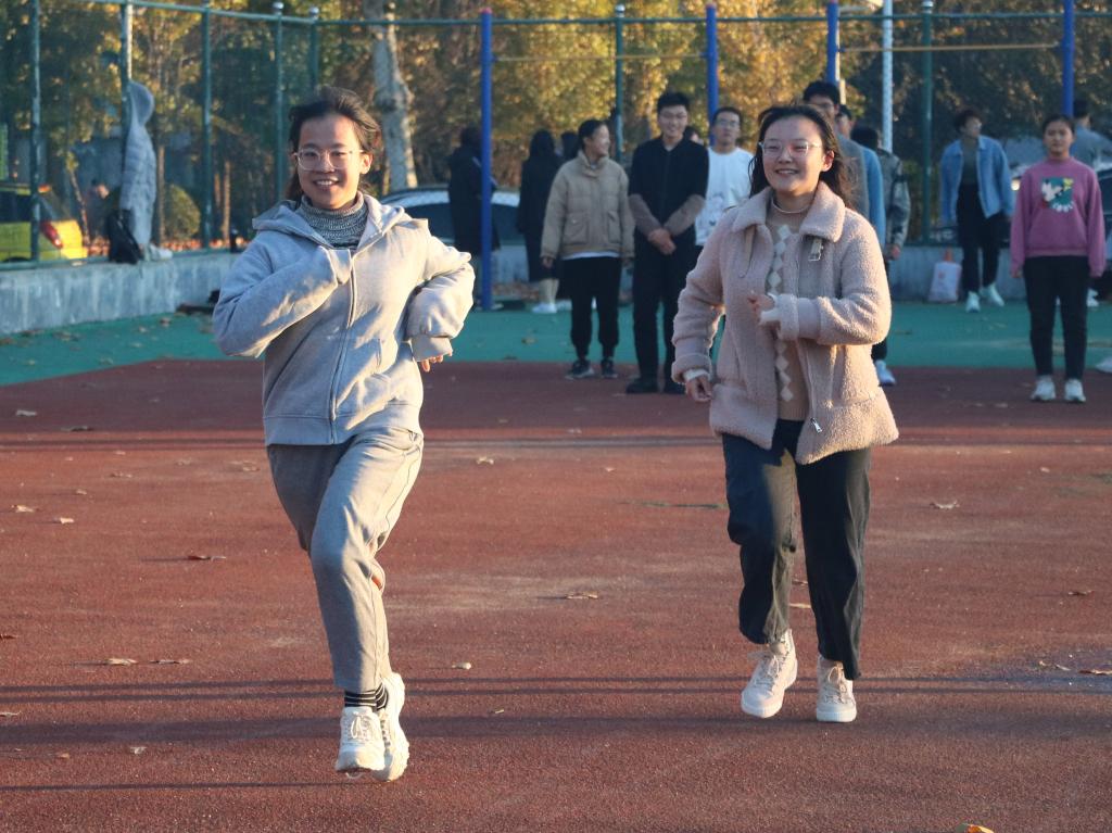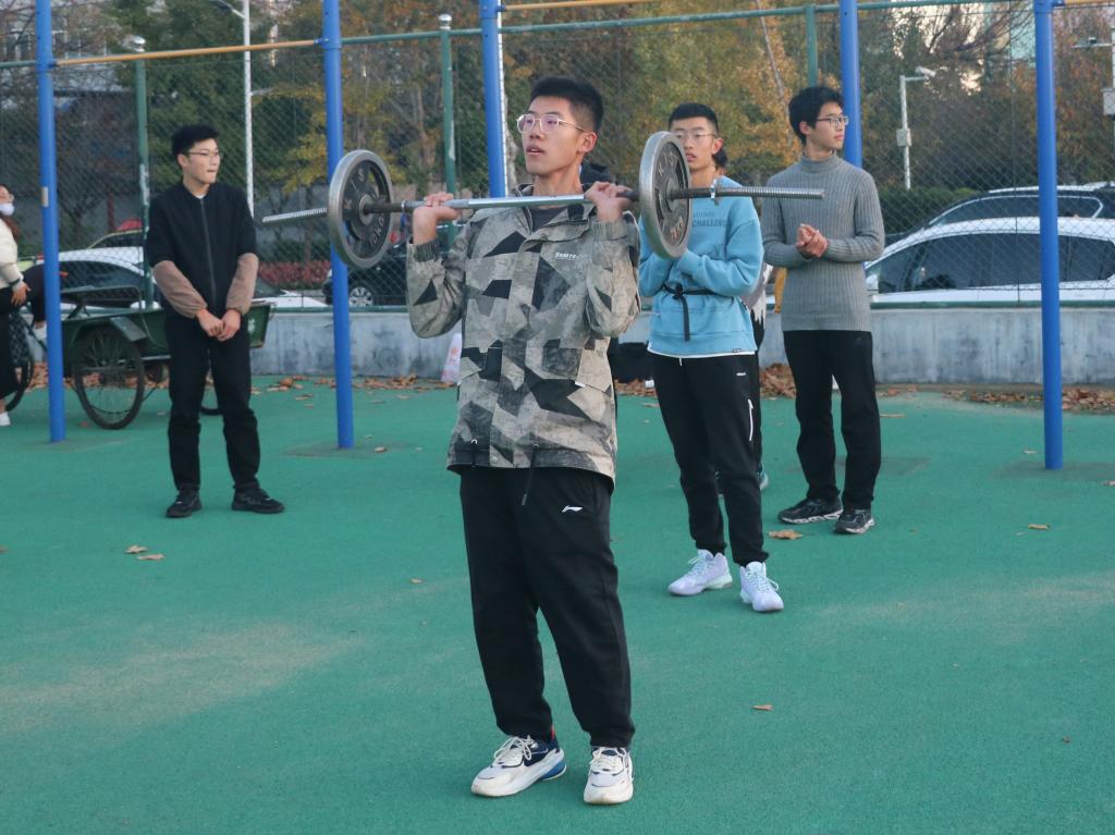 训练场上,外国语学院学生会体育部成员带领冬训队进行长跑热身,参训同学队形整齐、步履矫健。热身完毕后,同学们有序集合,在冬训教练员的指导下进行压腿、高抬腿、跨步跳等身体素质训练,并开始针对性训练项目的练习。寒风中,同学们热情依旧,在耐力与力量的挑战中不断突破自我,成为体育场上的一道亮丽风景线。体育部成员对饮水、营养补给等后勤保障工作高度负责,使参训同学能更好地投入到训练中。