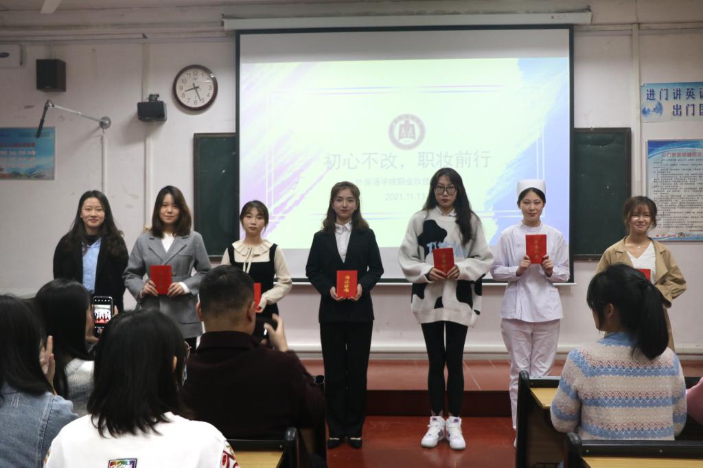 本次比赛包括模特展示和模拟面试两个环节。在本次比赛中,选手们各展风采,向同学们呈现了多样化的职业类型,展现了外院学子自信、积极、开放的形象。其中,2019级张梦帆组的模特自信大方,她向我们呈现了带货主播所具备的场控能力与产品介绍能力,赢得了评委们的一致夸赞20级英语三班的高曦组模特身穿黑色简约女士西服,以流利地道的口语,得体大方而又不失活力地向我们展现了作为一名外企翻译优雅知性,积极自信的职场女性形象。在选手们各自展现后,评委们根据每位选手的化妆技能、语言表达、逻辑思维和举止仪表等进行现场评分,得分较高者列入获奖名单。最后主持人宣读获奖名单,评委们分别为获奖同学颁奖,比赛在现场观众的热烈掌声中落下帷幕。