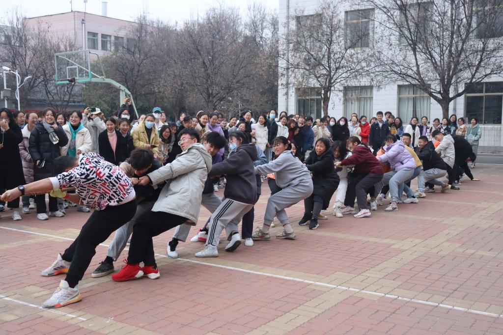 早上8点,运动会开幕式正式开始,学院工会主席高歌老师、辅导员赵文彬老师致辞,希望同学们能积极参加体育锻炼,强健体魄,并预祝本次运动会圆满完成。伴随着同学们的掌声与欢呼声,本次趣味运动会正式拉开帷幕。此次运动会分为集体项目和个人项目两大类。首先进行是的年级拔河比赛,跨年级的比拼中两个年级同学都拼尽全力,阵阵激昂的口号声展现了同学们蓬勃向上的朝气与活力,最终20级拔得头筹。在年级跳大绳比赛中,同学们与老师协调配合,展现了师生之间的默契。随后进行个人比赛,在踢毽子、定点投篮和抢凳子环节中,同学们都投入了百分百的热情与专注,享受着运动带来的放松与快乐;在你比我猜、两人三足、背夹气球的双人项目中,同学们齐心协力,并肩作战,展现了积极向上、团结并进的精神风貌;在趣味接力赛中,每组同学分工明确,在比赛过程中相互鼓励,生动体现了同学们之间真挚的友情和团结一致的精神。