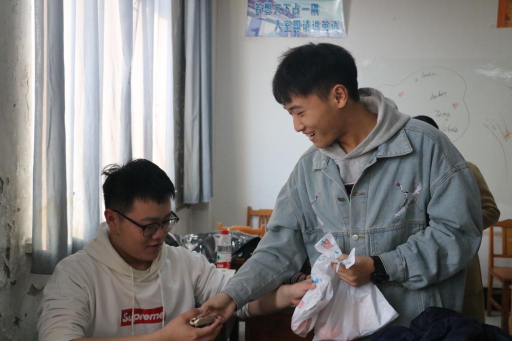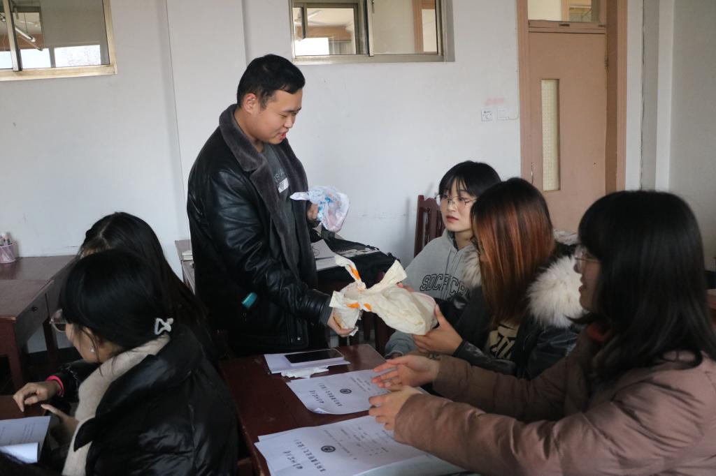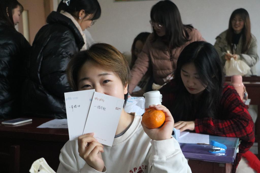 老师们与主席团成员分别将学院精心制作的“考研爱心礼包”分发给同学们,并为他们加油打气。“考研爱心礼包”里装有糖果、水果以及与水果寓意相关的贺卡:柿子象征着“柿柿”顺心、橙子象征着心想事“橙”、橘子寓意着一“橘”夺魁、苹果寓意着“苹”安顺遂……件件贴心的礼物,句句真切的话语,令身处紧张备考的考研学子深深感受到来自学院的爱与温暖。考研学子纷纷表示,“考研爱心礼包”让自己备受鼓舞,感受到了冬日温暖,增强了逐梦研途的信心,自己定会全力以赴,实现梦想。