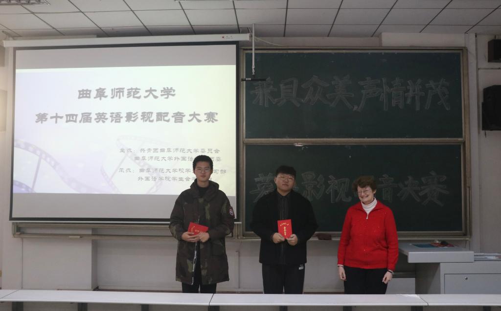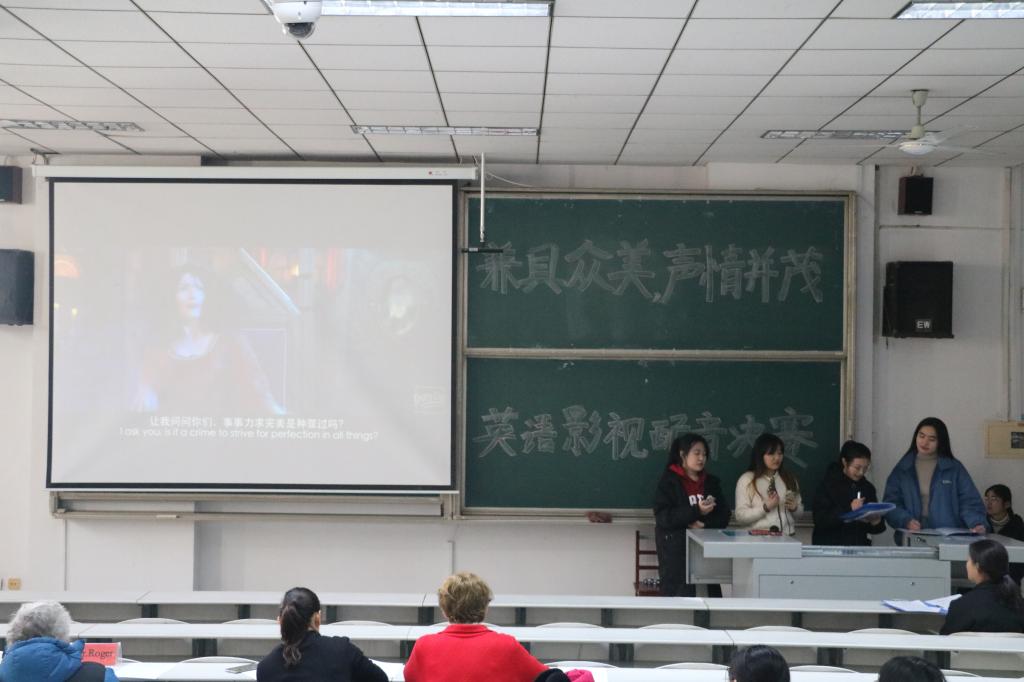 “兼具众美,声情并茂”,为使同学们充分体会英语学习的乐趣,进一步提高英语听说能力,增强语言学习效果,12月19日下午,成人动漫 于综合楼201室举办英语影视配音大赛决赛。成人动漫 英语系教师王海霞,外教Streeter、Roger出席并担任本次比赛的评委。