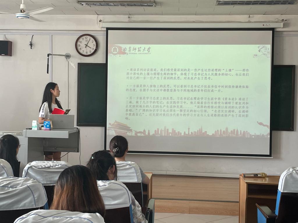 在交流会上,主讲人王孜淳用清晰、简洁的PPT向参会人员介绍了《习近平与大学生朋友们》一书的内容概要,分享感悟。她强调,青年要有担当,有创新,把小我融入大我,与时代同步伐,与人民共命运,多实践、多思考、多探索。最后,参会人员相互交流自身的体会和收获。