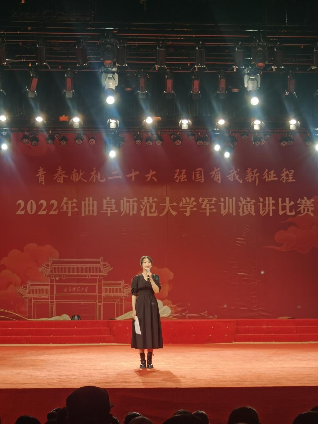 本次大赛以赓续红色血脉,矢志强国强军为主题,着力激发大学生关心国防、热爱国防、建设国防、保卫国防的政治热情。经过了一个半小时的激烈角逐,刘雨桐同学凭借优美的二胡演奏和慷慨激昂的演讲荣获二等奖。刘雨桐通过讲述济南五三惨案的遭遇、2011年利比亚撤侨以及前几年本人在韩国遇到自然灾害获得大使馆帮助的故事,论述国家的有力保障带给国民们强大的安全感,并呼吁新时代大学生为国家的繁荣昌盛贡献自己的一份力量。