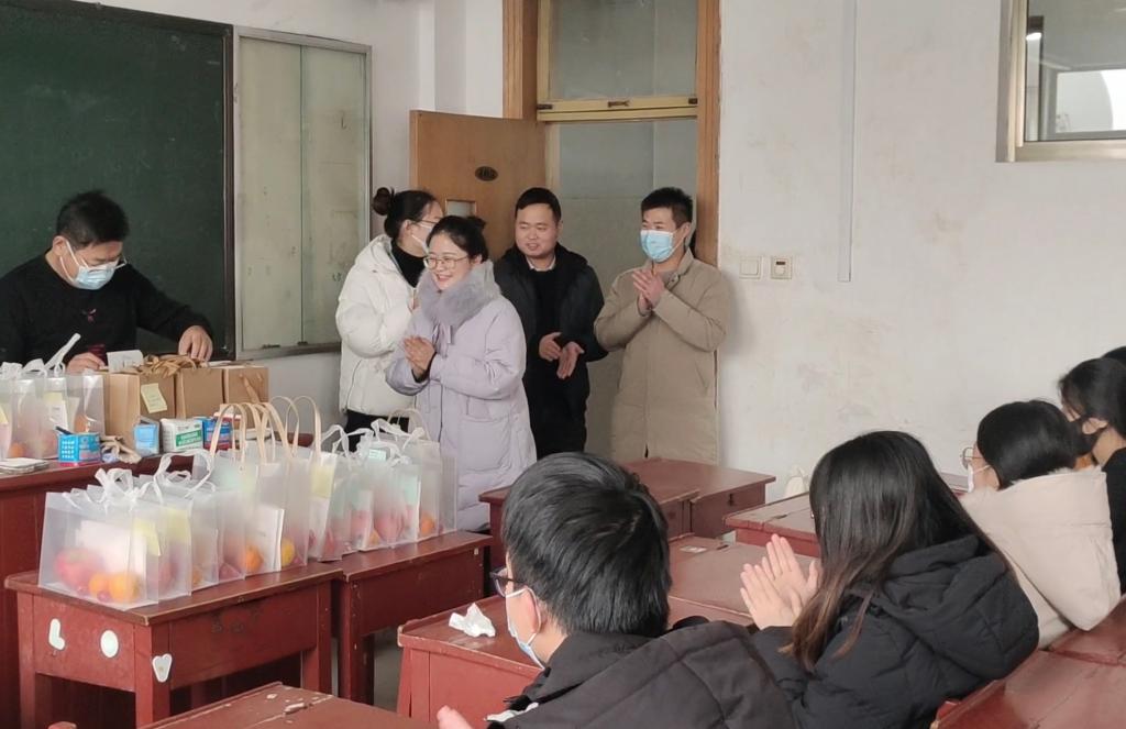 党委副书记王作茂、团委副书记张晓、辅导员赵文彬、王伟和王仁杰走进教室,为同学们送去温暖祝福。